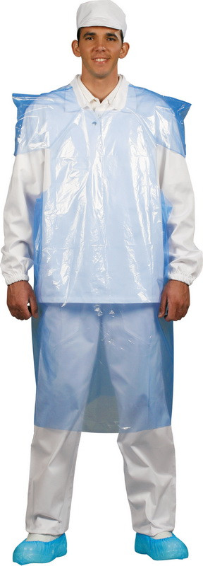 polietilén higéniai kötény40 µm anyagvastagságalulról felvehetőhigiéniai előírásoknak megfelelőkék színben